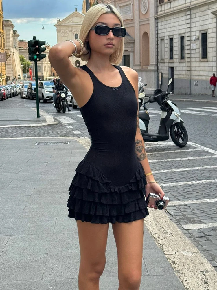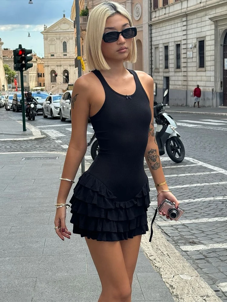 Trendix Sleeveless Ruffle Mini Dress Women Summer Sexy Bodycon High Waist Backless Dresses Street Casual Slim Beach Party Dress